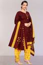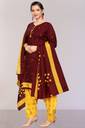 Beautiful Suit look pretty like never before.Wearing this Maroon Color Suit which made from Rajnandini with Yellow Colored Floral Print Cotton Blend Bottom and Maroon & Yellow Colored Cotton Blend Dupatta.Suit has also decorative work like Floral Print with Fancy buttons.This beautiful suit features a classy Printed Work all over,which makes it a smart pick for all occasions. You can wear this Suit in different styles. You can wear it occasionally or casually.