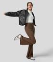 Our Stylish Women's High-Rise Loose-Fit Boot Cut Trousers are expertly crafted from a premium blend of cotton and polyester. The cotton blend ensures breathability and comfort, making them ideal for all-day wear in any season. Additionally, the polyester component adds durability and shape retention, ensuring that these trousers maintain their sleek silhouette wear after wear. With their soft feel and stretchy fabric, these trousers offer the perfect combination of style and comfort. Whether you're dressing them up for a day at the office or keeping it casual on the weekend, you'll love the luxurious feel and flattering fit of our cotton blend boot cut trousers.