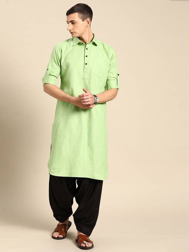 Rajubhai Hargovindas Men Solid Straight Kurta (Green)