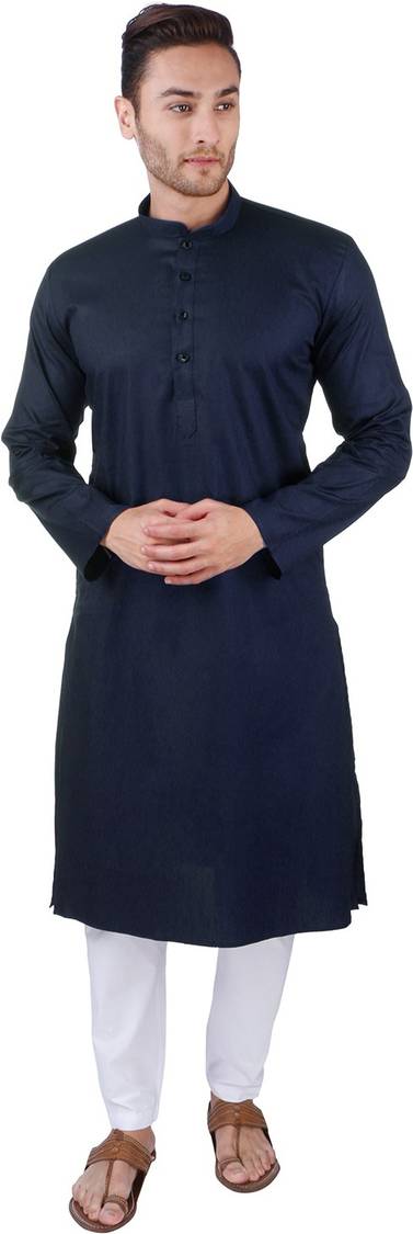 Rajubhai Hargovindas Men Solid Straight Kurta (Dark Blue)