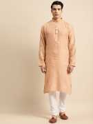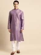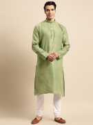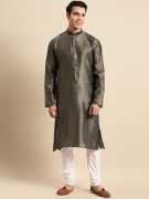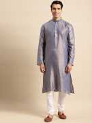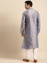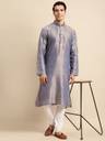 Men Solid Khadi Silk Straight Kurta (Blue)