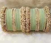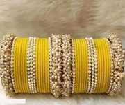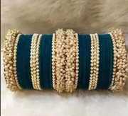 Finish Type:- Glossy ; Design Detail:- The design of this Bangle set can make your look beautiful and attractive, As the material of this Bangle set is made by very good quality material (like: Silk thread and Linked with Ball Stone Glossy Finished Bangle Set) and experienced labor as we cannot compromise our clients with the quality of our products. ; Pack Of Details:- A pair of 42 Bangle set