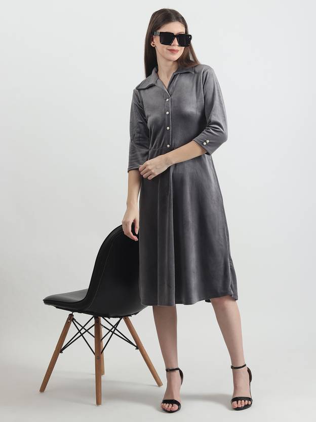 Soma Enterprises Women A-line Grey Below Knee Dress