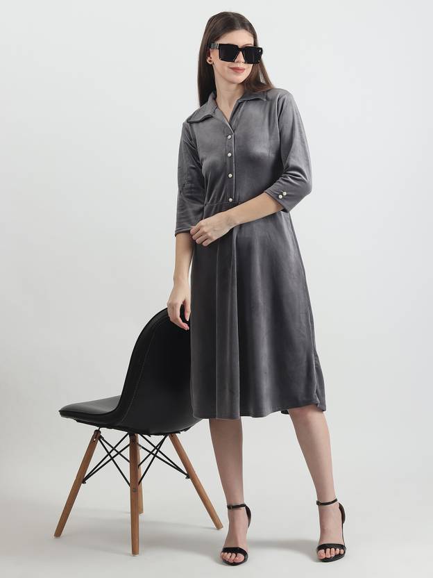 Discover the epitome of feminine grace with our knee-length woolen dress, a piece that seamlessly combines sophistication and effortless style. Crafted from luxurious chiffon, this dress features a captivating woolen Plain, making it a perfect choice for both casual and semi-formal occasions.