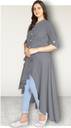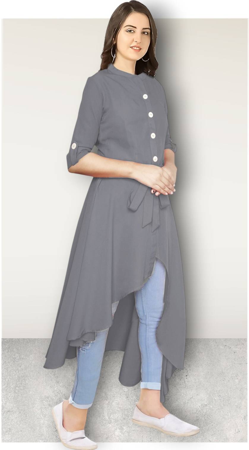 Women Solid Polyester Frontslit Kurta (Grey)