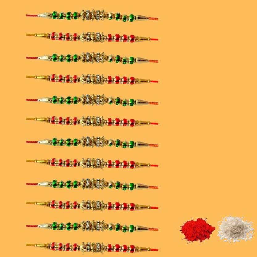 RakhiWala Religious rakhi set of 12 - Ram 324 Yarn Rakhi Set (12 Rakhi set, Roli Chawal, Greeting Card)