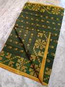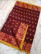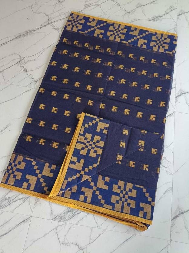 This saree is an outfit which women can carry off with great panache. It come with beautifully designed blouse piece with matching border on saree. With the right material and drape, it can accentuate the beauty of women of all ages and forms. Be it a festival or a wedding, sarees are a hot favourite worldwide, and it’s easy to see why. Sarees give you the opportunity to give a modern touch to a traditional Indian attire. Georgette is popular for its good drape, elasticity and characteristic lustrous surface. It has a complex weave that makes for versatile fabrics that can be used in evening wear, Casual Wear etc. You can choose your accessories according to the occasion. This saree can be paired with stilettos or peep toes, and jewelry to further enhance the look of the saree. Jewellery to wear with saree can range from one statement piece, to a full feast of small earrings, necklace, nose ring, and bangles. WoodenTant Navy Blue Cotton Designer Wear Handloom Tant Saree With Zari border and Buti Work with Starch on Saree . This tangail style tant saree can be worn with plain red or golden color blouse piece.This pure cotton tant saree do not have blouse piece. Bengali Tant Saree. This is 100% genuine woven thread buti work and designer border work saree. This is not simple print saree rather buti and border was made by thread work. This hand woven saree is authentic pure Bengali tant saree with high quality starch on it.