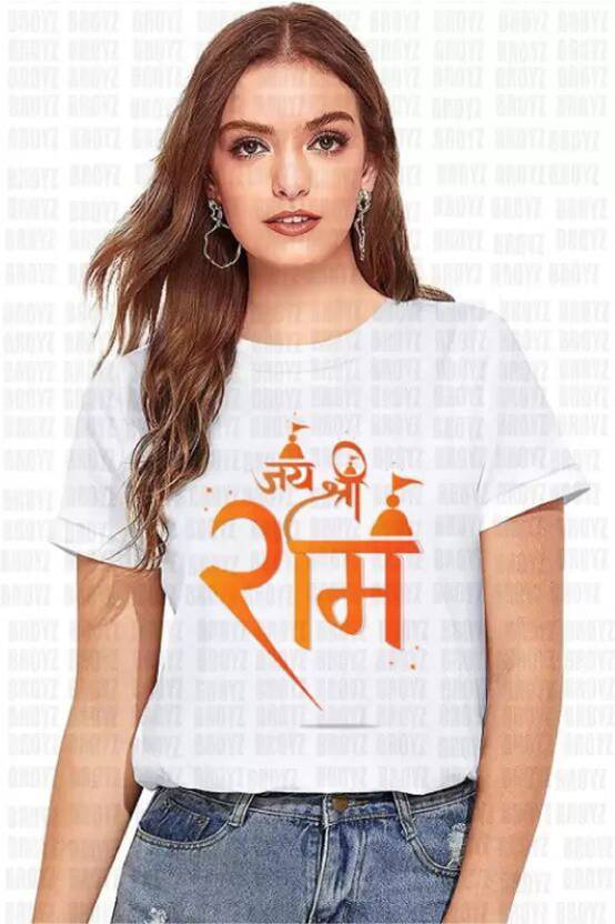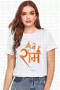 Women Printed, Typography Round Neck Polyester White T-Shirt