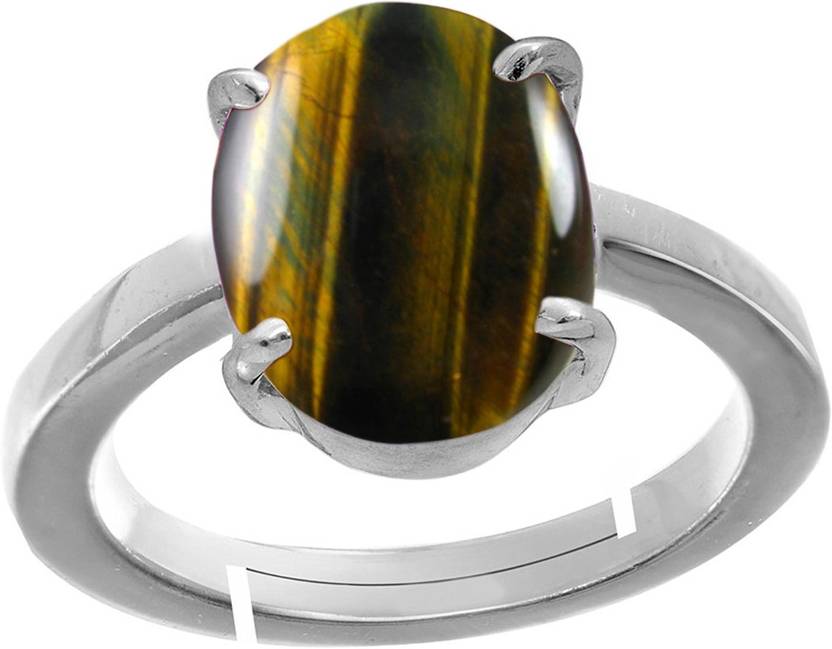 natural tiger's eye stone silver adjustable ring 6.25 ratti original certified chiti gemstone chandi free size anguthi unheated untreated gems for astrological use.