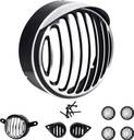 Complete Metal Bullet Headlight Grill Set for Royal Enfield Bullet Classic 350 & 500 (Set of 8) (Set of 8, Black and Chrome with Cap)