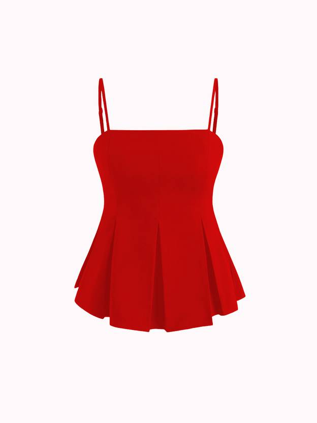 Sleeveless Shoulder Strap Box Pleated crop Cami Top Elegant Black Peplum Top – Flattering and Stylish Elevate your wardrobe with this chic and versatile black peplum top. Crafted with precision, this sleeveless design features thin, adjustable straps that offer both comfort and a tailored fit. The structured bodice complements your silhouette, while the peplum flare adds a touch of elegance and movement. Perfect for day-to-night transitions, this classic black top can be styled effortlessly with jeans, skirts, or tailored pants. Whether you’re dressing up for a night out or adding a polished look to your workwear, this timeless black top is a must-have for any fashion-forward individual. Color: Black Design: Peplum with pleats Occasion: Casual, formal, or evening wear Style: Minimalist, elegant, and versatile Fit: Slim-fit bodice with a flared hemline for a flattering silhouette Shop this stylish black peplum top today and bring effortless sophistication to your wardrobe!
