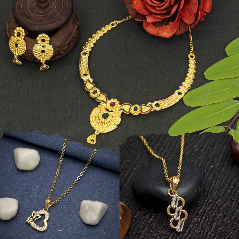 Brass Gold-plated Gold Jewel Set (Pack of 3)