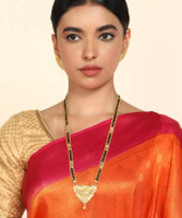Thanks to its exquisite gold-plated finish, this mangalsutra lends a stunning charm. Additionally, the gold-plated surface adds a luxurious touch, enhancing the overall beauty and elegance of this piece. Furthermore, the gold plating not only enhances the aesthetics but also provides a protective layer, ensuring that this mangalsutra maintains its stunning appearance over time.