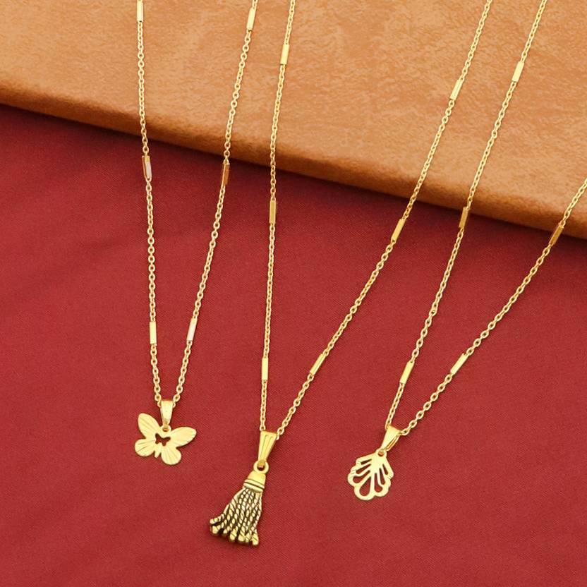 Sales Package - Pack of 3 Pendant and Chain,Colour - Gold,Material - Gold Plated Pendant Chain,Length - 20 Inch,Chain Type - Box Chain. This Modern and Traditional Antique Chain and Pendant Will Complement Any Indian Attire.The product in display is made from metal material and is finished in an attractive gold color.furthermore, this product features a chain shape, and a design that renders it with the versatility to be worn as a all occasion.the jewelry is made keeping in mind the women; who is today modern yet connected to our traditional values.