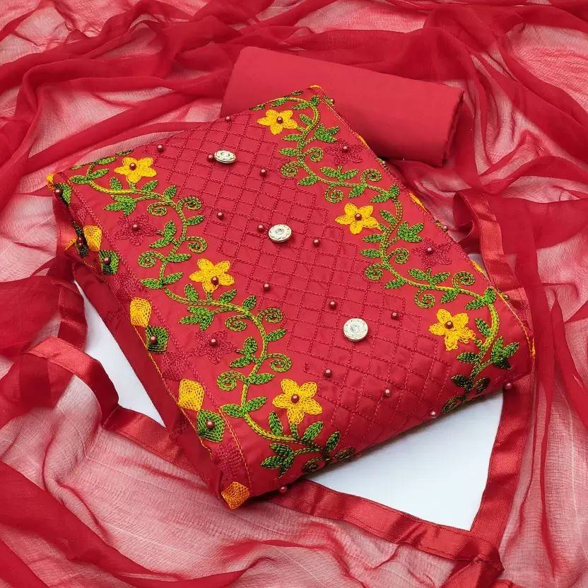 ramdev creation Cotton Blend Embroidered Salwar Suit Material