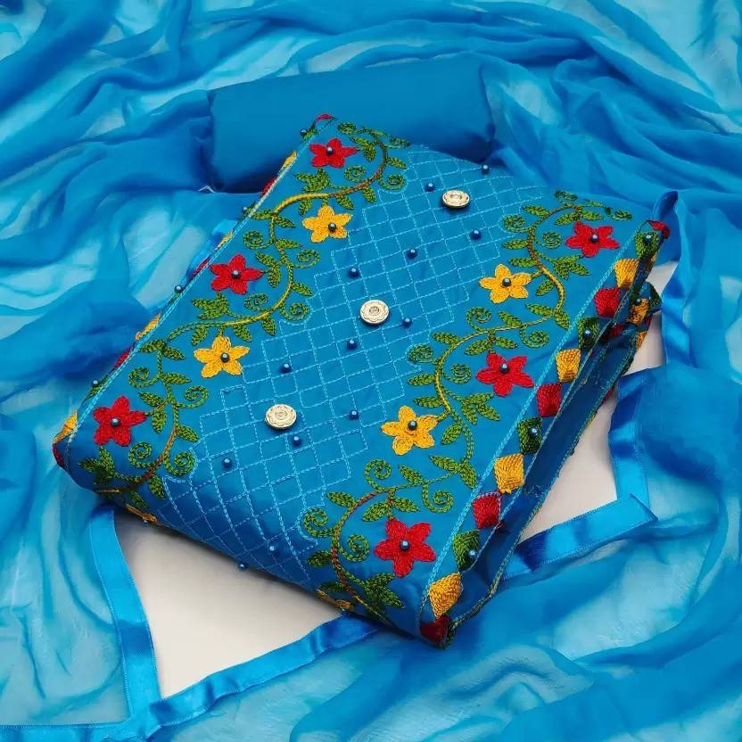 ramdev creation Cotton Blend Embroidered Salwar Suit Material