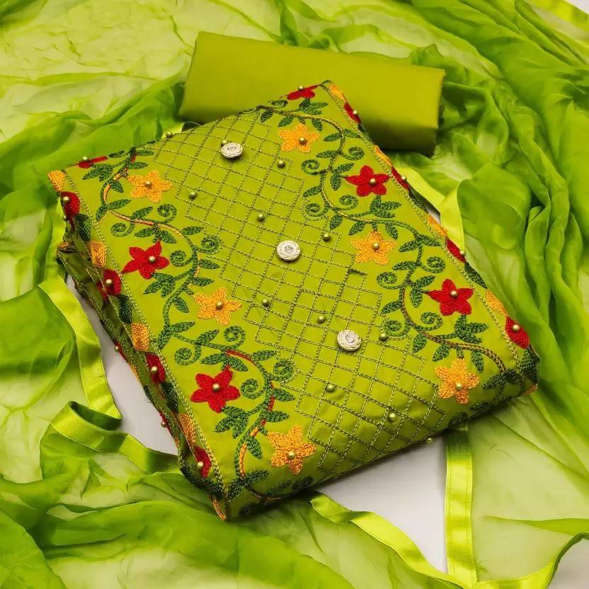 ramdev creation Cotton Blend Embroidered Salwar Suit Material