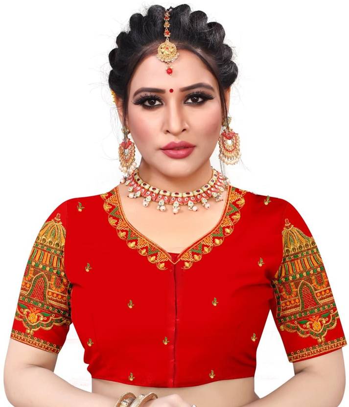 ramdev creation Unstitched Satin Blouse Material Embroidered