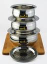 RAMILA Pack of 6 Stainless Steel Dinner Set Handi,Handi Set With LASER DESIGN LID(1.5-L, 1-L, 0.75-L / Capacity) Dinner Set (Steel)