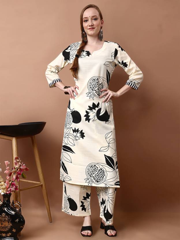 FABRILON Women Floral U-Neck Lace Border Printed Kurta Set