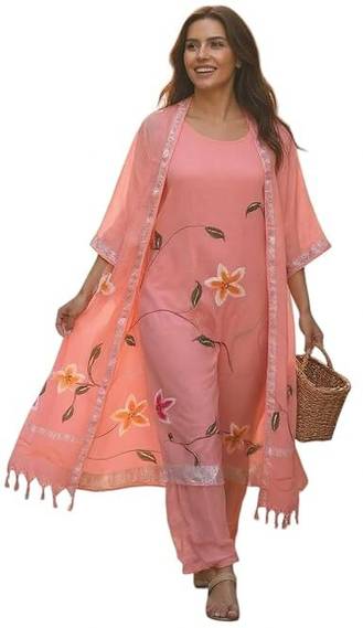 The set includes a hand-painted linen top, a matching dupatta with a shimmering silver zari border, and a comfortable cotton bottom fabric—perfect for custom tailoring. Whether it’s festive wear, office functions, family gatherings, or casual outings, this suit set adds sophistication to every occasion.