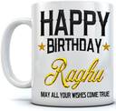 RAMPOSH Happy Birthday Raghu Name Printed Ceramic Coffee . 350 ml Best Gift For Birthaday. Ceramic Coffee Mug (350 ml)
