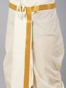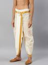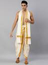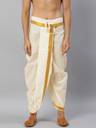 Cream-Coloured mid-rise solid Panchakacham dhoti pants, has a drawstring closure, has a zari border,The product comes with an Angavastram, has a zari border