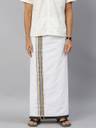PRANAM GOLD Pure Cotton White dhoti with grey Jari Border. Traditional wear for wedding and religious festivals. The wedding dresses capture the grace, elegance, and edge of the sophisticated modern Look. The fine quality of Cotton yarns used makes the wearer feel More comfortable.