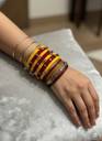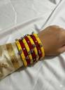 Traditional Silk Thread Bangles for Women and Girls, Red & Yellow Stone Studded Bangles (Set of 10)