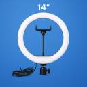 14-inch Large LED Ring Light for wide and uniform lighting, Three Lighting Modes: Cool White / Natural / Warm, 10-Level Brightness Control, Flexible & Adjustable Phone Holder, Sturdy Ball Head Mount for Angle Adjustment, USB Powered – Works with Laptop/Power Bank/Adapter, Perfect for Makeup, Vlogging, YouTube, Live Streaming, Reels, Photography, Low Heat, Energy Efficient & Long LED Life