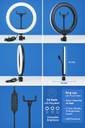 The flexible phone holder ensures stable recording, and the in-line controller lets you adjust brightness with a single touch. Powered via USB, it is compatible with laptop, power bank, and adapter, making it ideal for indoor and outdoor use.