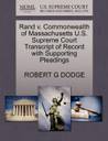 Rand V. Commonwealth of Massachusetts U.S. Supreme Court Transcript of Record with Supporting Pleadings (English, Paperback, Dodge Robert G)