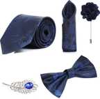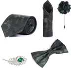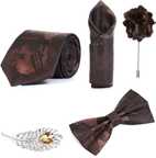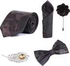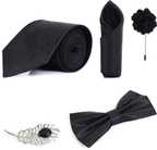 Random Stripe Men’s Luxury Tie Gift Set – Necktie, Bow Tie, Pocket Square, Brooch & Lapel Pin | 12 Elegant Colors.