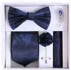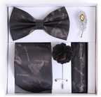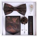 • Men Necktie Set With Pocket Square Lapel Pin Brooch & Bow Tie Gold