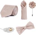 Random Stripe Men’s Luxury Tie Gift Set – Necktie, Bow Tie, Pocket Square, Brooch & Lapel Pin | 12 Elegant Colors.