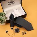 Necktie Hankerchief Cufflinks Set for Men Grey
