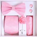 This 5-in-1 classy set includes a Necktie, Bow Tie, Pocket Square, Designer Brooch, and Matching Cufflinks, making it a complete accessory package for men. Available in 9 stunning colors, this combo set is designed to complement suits, sherwanis, blazers, and coat-pants for weddings, receptions, parties, business meetings, and festivals.