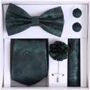 This 5-in-1 classy set includes a Necktie, Bow Tie, Pocket Square, Designer Brooch, and Matching Cufflinks, making it a complete accessory package for men. Available in 9 stunning colors, this combo set is designed to complement suits, sherwanis, blazers, and coat-pants for weddings, receptions, parties, business meetings, and festivals.