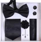 This 5-in-1 classy set includes a Necktie, Bow Tie, Pocket Square, Designer Brooch, and Matching Cufflinks, making it a complete accessory package for men. Available in 9 stunning colors, this combo set is designed to complement suits, sherwanis, blazers, and coat-pants for weddings, receptions, parties, business meetings, and festivals.