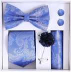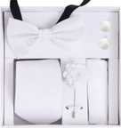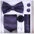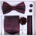 This 5-in-1 classy set includes a Necktie, Bow Tie, Pocket Square, Designer Brooch, and Matching Cufflinks, making it a complete accessory package for men. Available in 9 stunning colors, this combo set is designed to complement suits, sherwanis, blazers, and coat-pants for weddings, receptions, parties, business meetings, and festivals.