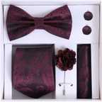 Made with high-quality microfiber fabric, the tie and bow tie come with a premium paisley design and smooth finish. The brooch and cufflinks add an extra edge of sophistication, while the Random Stripe premium gift box makes it perfect for gifting to loved ones.