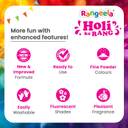 Safe for children- this specially formulated non-toxic colors are safe for children over ages of 3 years.Non-toxic holi colors - rangeela holi ke rang is non-toxic specially formulated ready to use fine powder colors for all celebrations like holi, weddings, diwali and can be used for rangoli.Easily washable & easy to remove – rangeela holi ke rang is washable colors and is easy to remove from skin, hair, clothes & fabrics.Trusted brand for 20 years – rangeela holi ke rang is a trusted brand that has been the pioneer of holi colors for 20 years, soft and smooth on skin – feels soft and smooth on skin, pleasant fragrance – rangeela holi ke rang has a pleasant fragrance.
