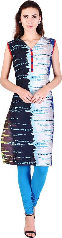 Women Printed Cotton Blend Straight Kurta (Multicolor)