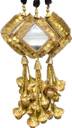 Add royal charm to your bridal or festive look with this beautifully handcrafted Golden Princess Latkan. Designed with a stunning combination of mirror work, metallic tassels, golden beads, and intricate detailing, it is perfect for weddings, haldi, mehndi, and Navratri occasions. The unique square mirror design and heavy cluster give it a statement appeal.