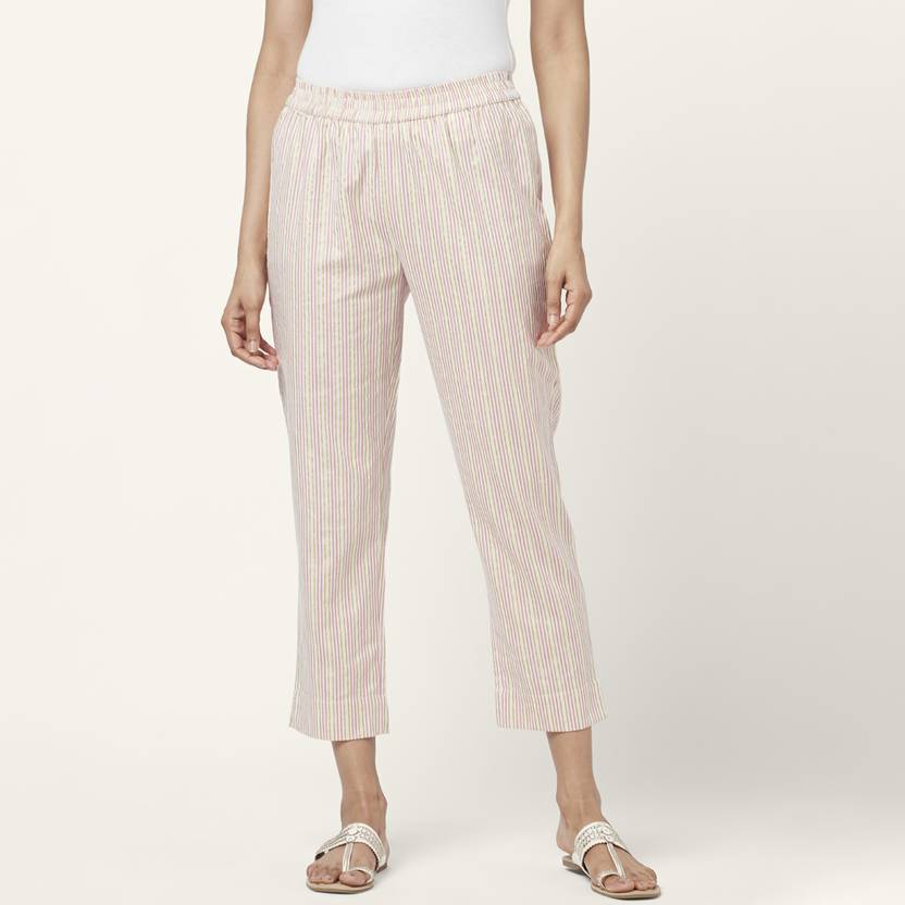 Enhance your ethnic wear style by adding these beautiful bottoms. It features an elasticated waistband, a lean silhouette, and an all-over colourful striped print. Made from lightweight quality fabric for the perfect ease and look.