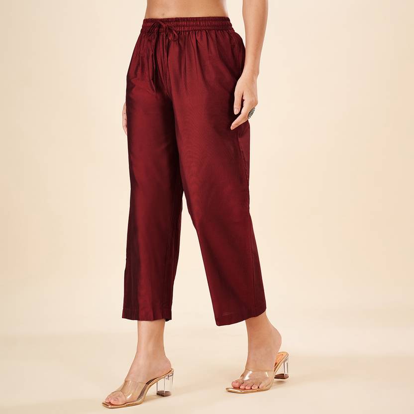 Strengthen your ethnic staples with these lovely pants. The style has an elasticated waistband and a wide-leg body in a two-tone finish. Crafted to provide lasting comfort, thanks to the premium fabric selection, this pair will become your fav go-to.