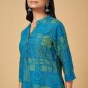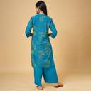 Contemporize your ethnic looks with this kurta and pyjama set. The kurta features a banded V-neckline with a 4-button placket on the front, half sleeves with turn-up tabs and an all-over eye-catchy print. The pants have an elasticated waistband, cropped wide-leg silhouette and a solid finished body. The set is crafted to perfection using excellent rayon fabric to deliver great breathability and comfort.