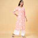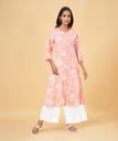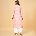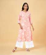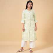 Get the good times rolling with this contemporary kurta. The kurta features a round neck with a button placket, 3/4 sleeves, pockets and an A-line silhouette with a delightful print. Realized from a lightweight woven fabric to keep you comfortable as you enjoy the festivities.