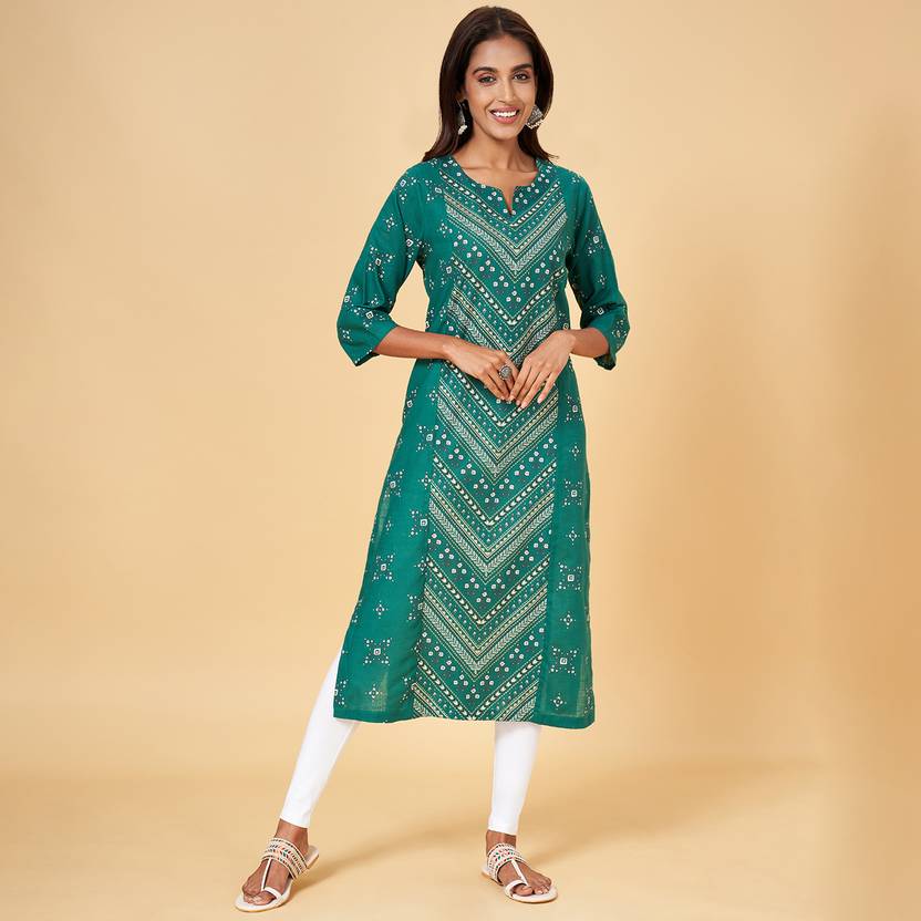 Rangmanch by Pantaloons Women Printed Straight Kurta (Green)