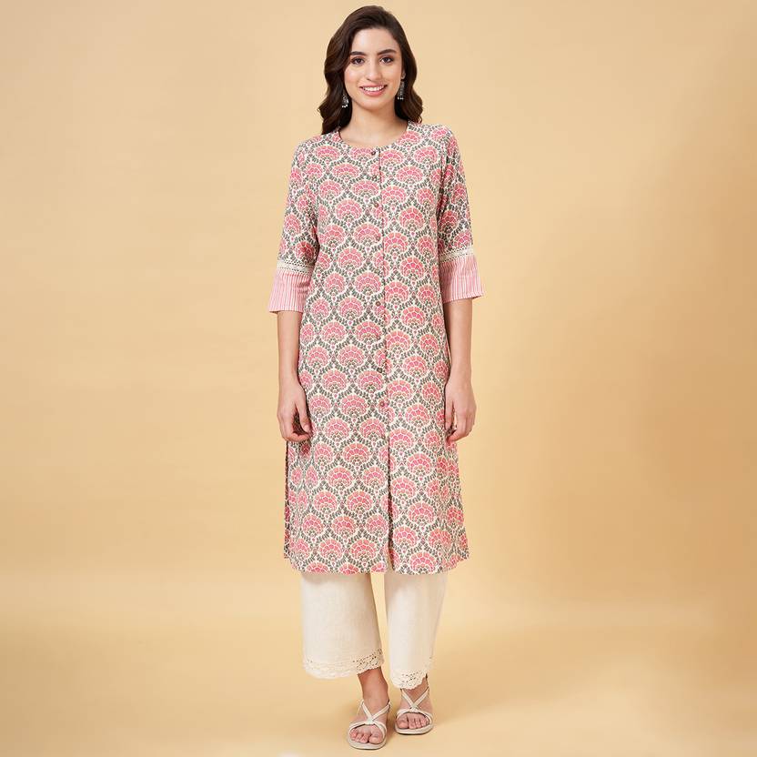 Ramp up your festive style by wearing our exclusive selection. The kurta features a round neckline with a button placket, detailed 3/4 sleeves, pockets and a uniform all-over print. Made from a special fabric that keeps you comfortable as enjoy the event.